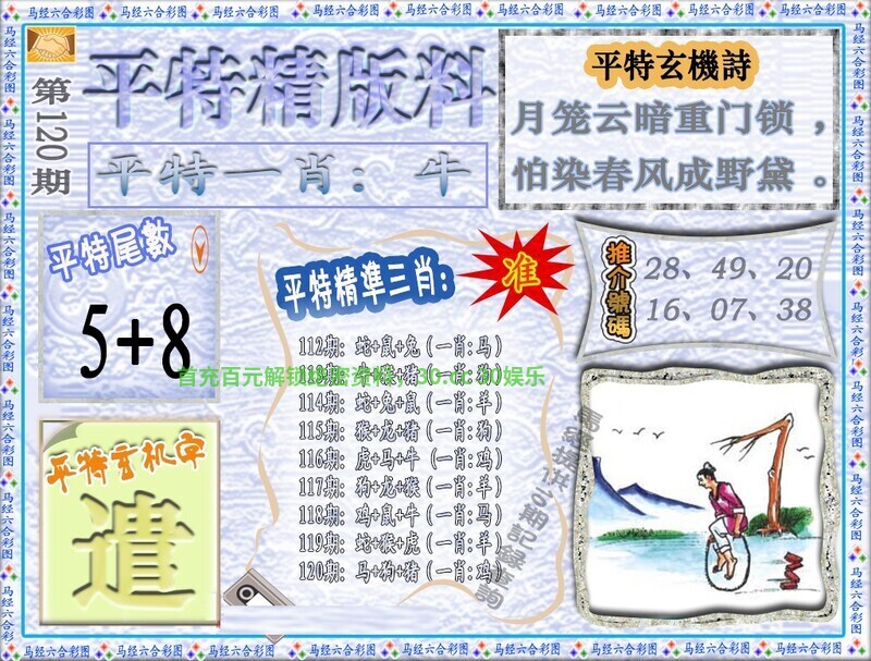 | 120期:必中六尾【012356】开:牛41准 |