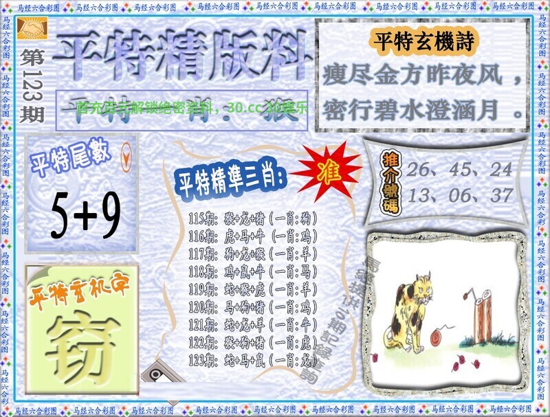 | 121期:必中六尾【123569】开:兔15准 |